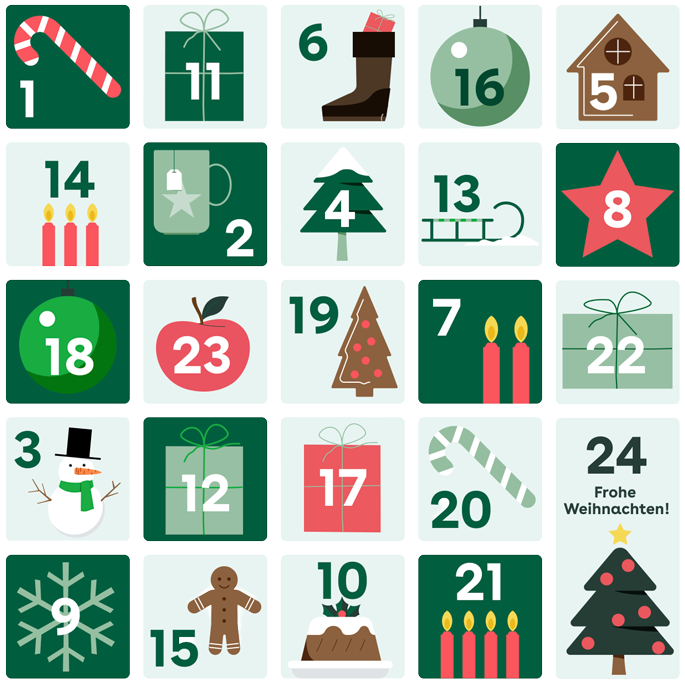 Schön, dass Sie da sind! Die Vorweihnachtszeit ist oft intensiv und voller Termine. Umso wichtiger sind bewusste Momente, die guttun. Mit unserem digitalen Adventskalender möchten wir Sie dieses Jahr dazu einladen, täglich kurz innezuhalten. Statt Schokolade gibt es hier Ideen für einen gesunden (Arbeits-)Alltag und einen positiven Teamgeist – und als Bonus haben wir sogar ein Geschenk für Sie. Seien Sie gespannt, was Sie erwartet – es lohnt sich, jeden Tag vorbeizuschauen und ein neues Türchen zu öffnen.